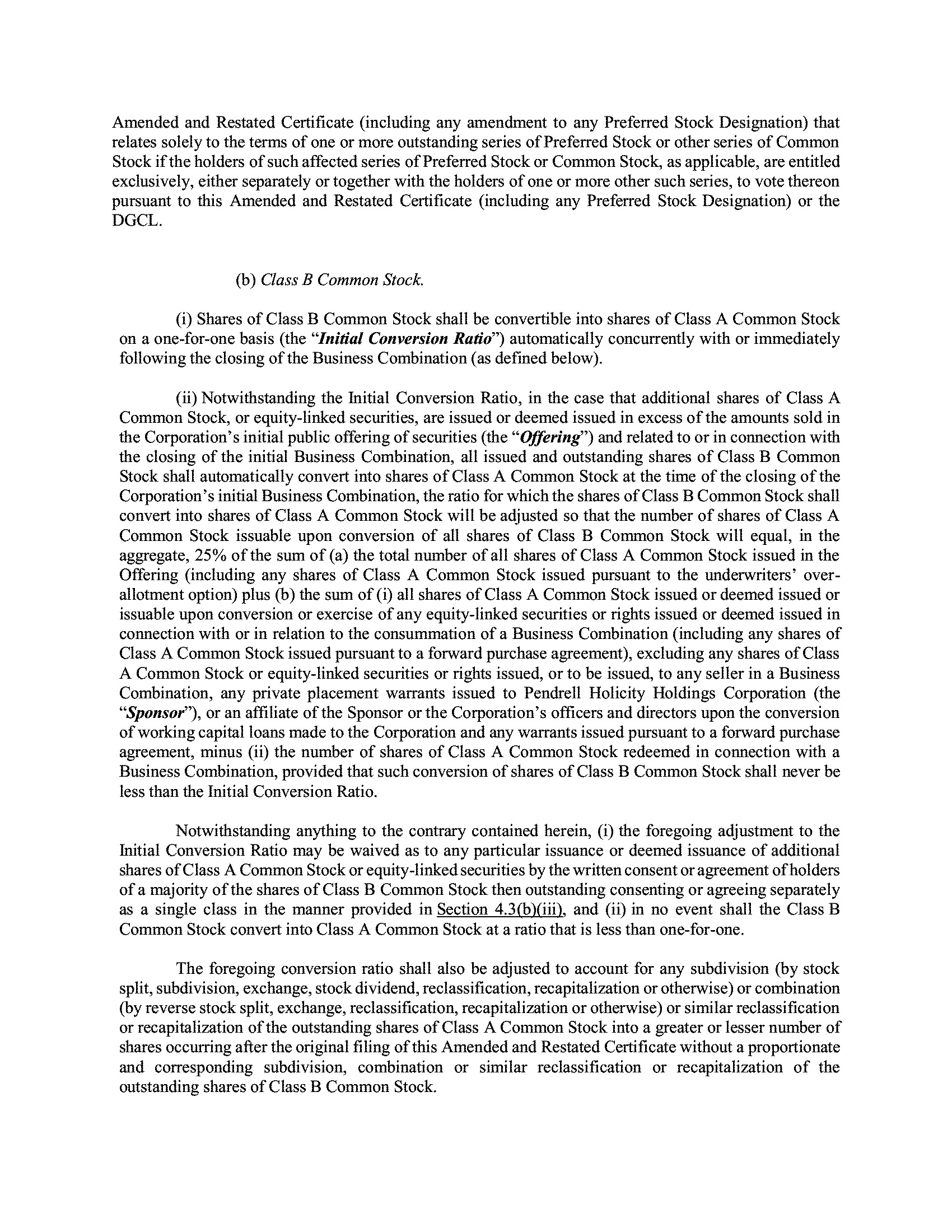 WHEREAS, the Company intends to consummate an initial public offering of the Company’s units (the “Public Offering”), each unit consisting of one share of the Company’s Class A common stock, par value $0.0001 per share (each, a “Share”), and one-third of one redeemable warrant. Each whole warrant entitles the holder to purchase one Share at an exercise price of $11.50 per Share. The Purchaser has agreed to purchase up to an aggregate of 5,000,000 warrants (or up to 5,550,000 warrants in the aggregate to the extent the over-allotment option in connection with the Public Offering is exercised) (the “Private Placement Warrants”), each Private Placement Warrant entitling the holder to purchase one Share at an exercise price of $11.50 per Share.