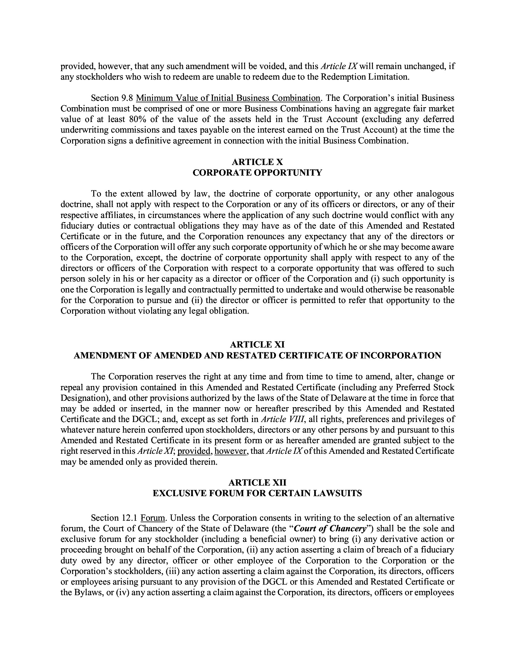 | ● | An Investment Management Trust Agreement, dated August 4, 2020, by and between the Company and Continental Stock Transfer & Trust Company, as trustee, a copy of which is attached as Exhibit 10.2 hereto and incorporated herein by reference |
