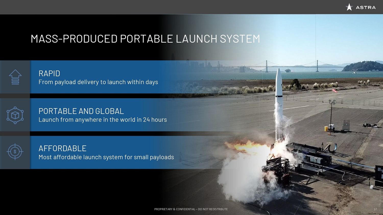 Then lastly, being operationally efficient is incredibly important. One of the things that I’ve noticed about Astra is that it is already thinking about, “How do we utilize cloud services? How do we utilize the Internet? How do we have a small group of folks at a spaceport and centrally run mission control from here in the Bay Area?” The days of 30 people in mission control, like the old sixties, those are behind us. And utilizing technology, utilizing automation, utilizing the Internet, we are able to operate at a very, very efficient rate. In addition, having design, fabrication, and test all here in a single facility right in the middle of the Bay Area allows us to iterate at a rate that is really phenomenal. I think all these things, when you put them together, create an incredible value for our customers. So I’m going to hand the discussion over to Martin Attiq, our Chief Business Officer, who can tell you a little bit more about that.