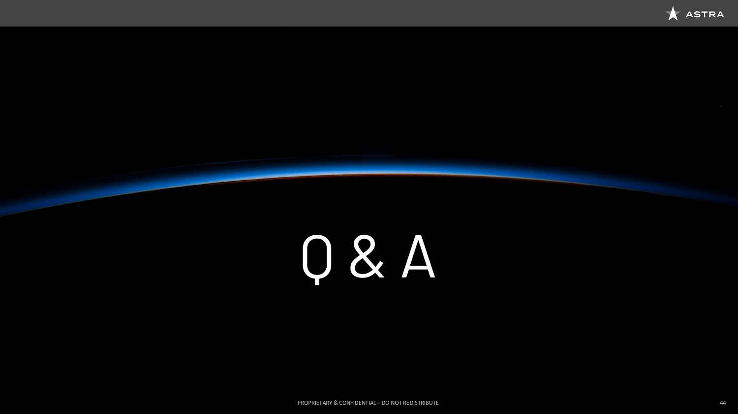 Sure Dane, no problem. So in December, Astra demonstrated orbital launch capability. And we really are on track right now for our summer first commercial launch, and then proceeding forward into monthly launches towards the end of this year. I think for Astra, the big next step is scale. And so it's about taking our ability to make these technologies robust and taking that to the next step of doing it at scale so we can hit these greater cadences.