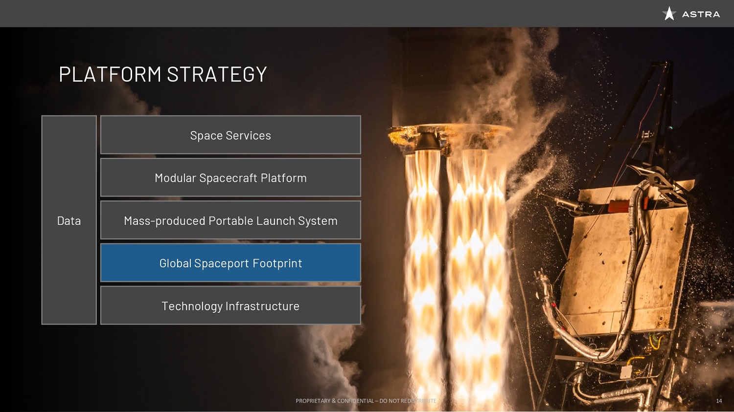 The second is really globally optimizing. This is something that I’m really excited about doing at Astra, which is instead of taking a piece of the problem, looking at spaceports and the rocket and the satellite and figuring out how to solve these problems as a single problem together, that yields a really optimized solution. Astra has invested deeply in a number of really core technologies to delivering really great orbital space services. One key element of that is propulsion. Another is avionics. Another is understanding the material technologies that lend themselves to scale. So these are all key areas that I see Astra having, and Astra will continue to invest. You will all see that versus time.