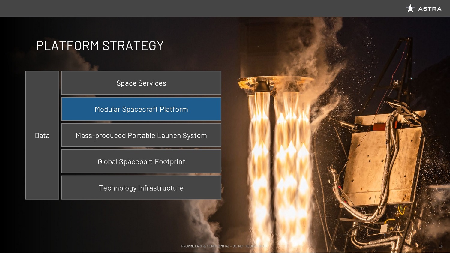 So Astra is building a spacecraft platform that looks a lot like the Dell or the Apple of the 1990s or an iPhone where you can plug in peripherals, load software, and begin offering a capability. And that’s really what our customers want. We hear from our customers all the time that what they want is they want to solve problems in space. They don’t want to build all of the infrastructure. Just like companies don’t build data centers and networks to build applications today, they deploy them on Amazon Web Services or Microsoft Azure, Google Compute Cloud. You can think of Astra as building a platform much like the cloud, but in space, where our customers can maybe give us a camera, give us a sensor, a radio, plug it in, plug and play like you would a device on a PC to your USB port. And then what we worry about is not optimizing the device around the satellite, but the satellites around the entire launch system.