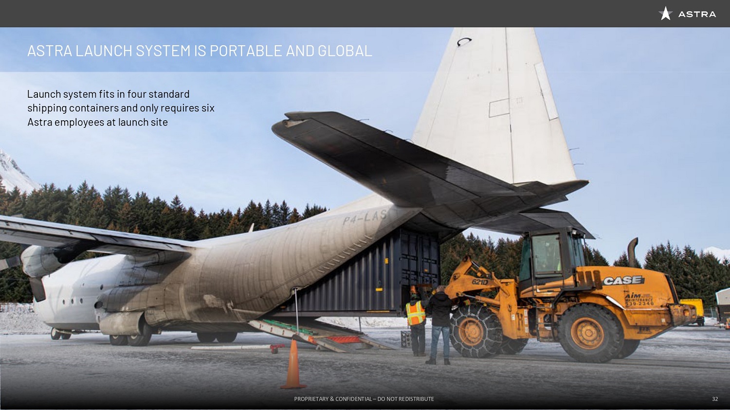 This allows us to operate a global spaceport footprint. We can set up a spaceport with a license that requires no more infrastructure than a fence and a concrete pad. Our teams have demonstrated that they can take our entire system, the rocket and the spaceport, pack it up into four shipping containers and launch a rocket with five people in five days. And this capability is unprecedented. It means that Astra can start building launch sites around the world and we can build these spaceports out after they’re licensed to operate launches literally from anywhere on earth and put satellites to anywhere in space. This is enabled by a mass produced and portable launch system that’s unique to Astra. In fact, during the DARPA Launch Challenge, Astra was the only company on earth had showed up with a rocket and a launch system as a finalist in the challenge. The challenge required us to go to a spaceport that we’d never been to before and launch a rocket in a few days.