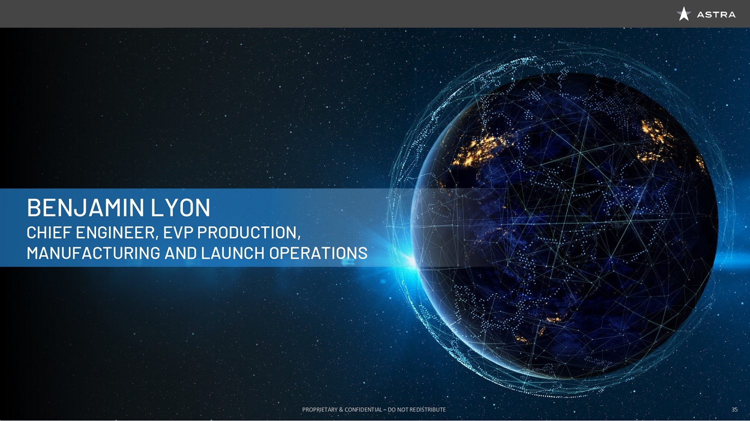 Benjamin Lyon (Astra, Chief Engineer and EVP of Manufacturing, Production and Launch Operations):