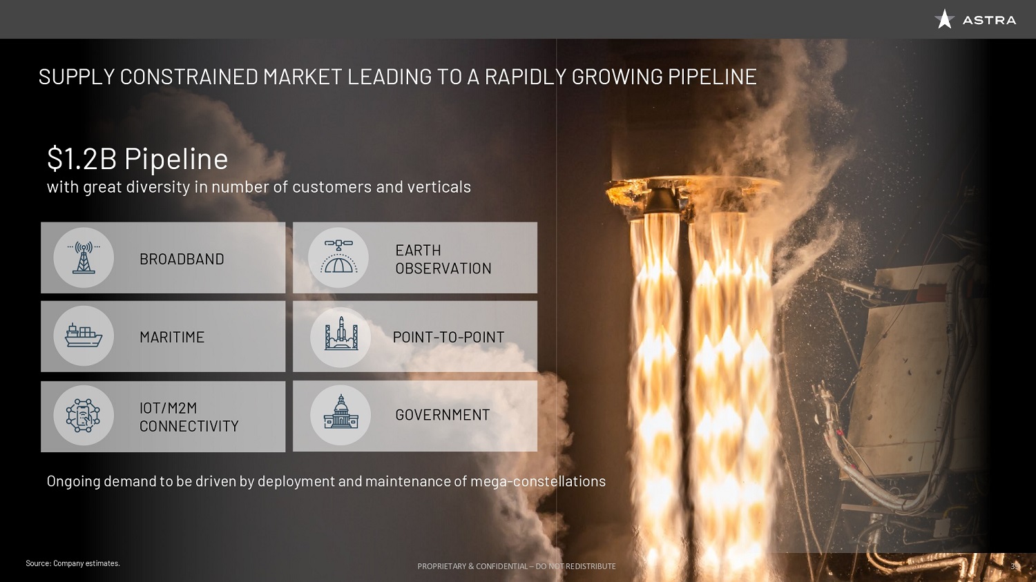 Sure Dane, no problem. So in December, Astra demonstrated orbital launch capability. And we really are on track right now for our summer first commercial launch, and then proceeding forward into monthly launches towards the end of this year. I think for Astra, the big next step is scale. And so it's about taking our ability to make these technologies robust and taking that to the next step of doing it at scale so we can hit these greater cadences.